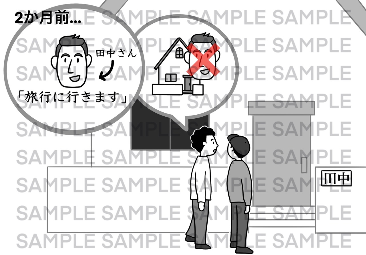 (2ヶ月前に田中さんは旅行に行くと言っていました)留守のはずです。