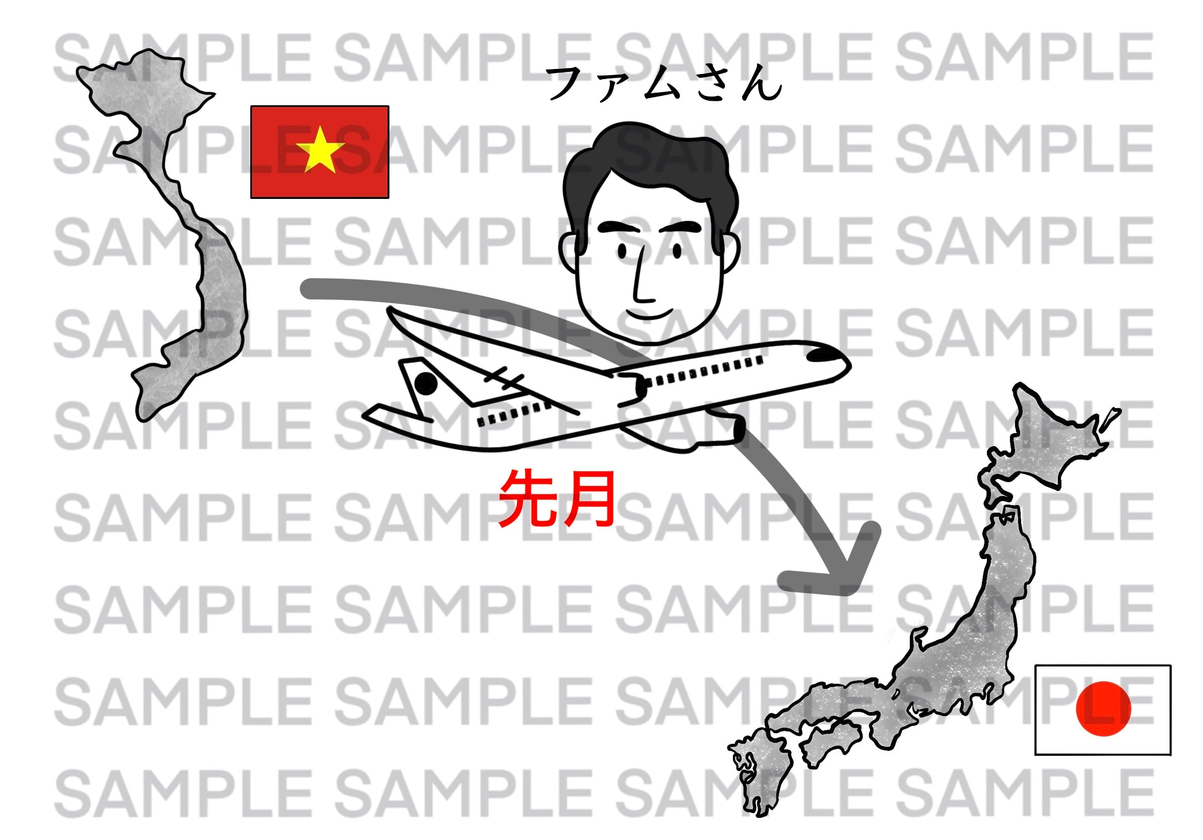 ファムさんは[4日前に/最近]日本語の勉強を始めたばかりです。