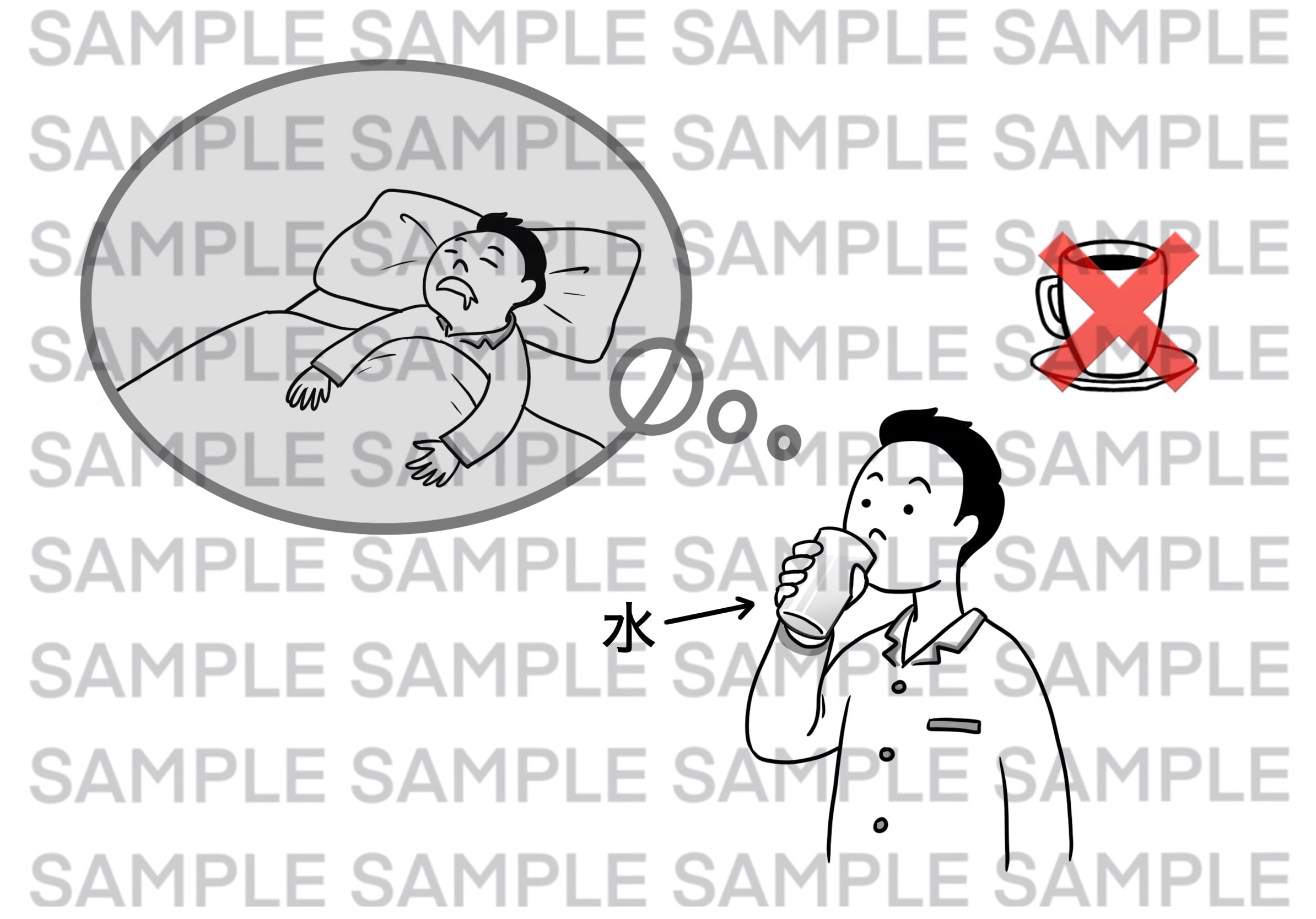 寝られるように、コーヒーを飲まないで、水を飲みます。