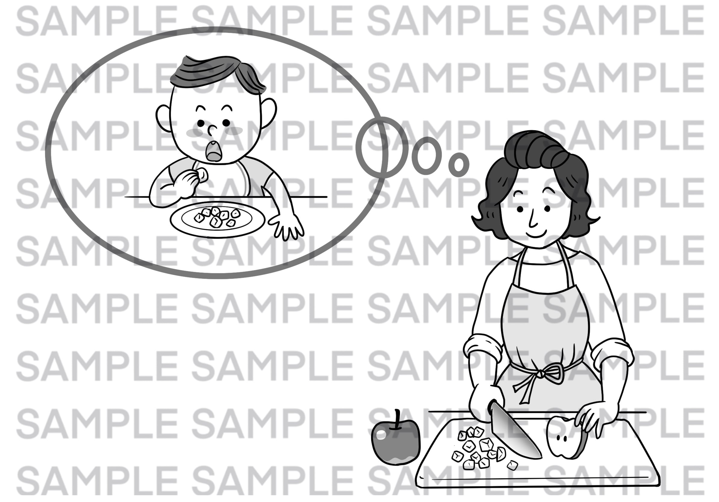 子どもが食べられるように、りんごを小さく切ります。